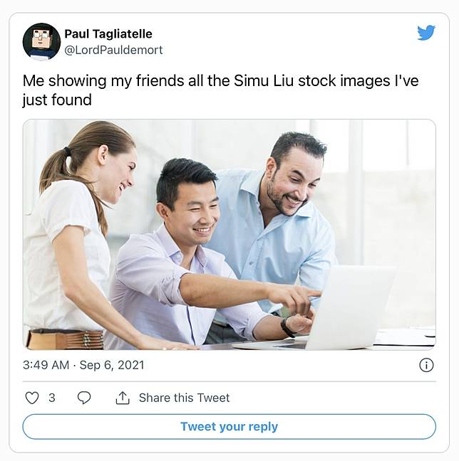 One Twitter user coined the phrase. Simu Liu star of Shang-Chi and the Legend of the Ten Rings called back to his past career stint as a stock image model in celebrating his new films success at the box office.